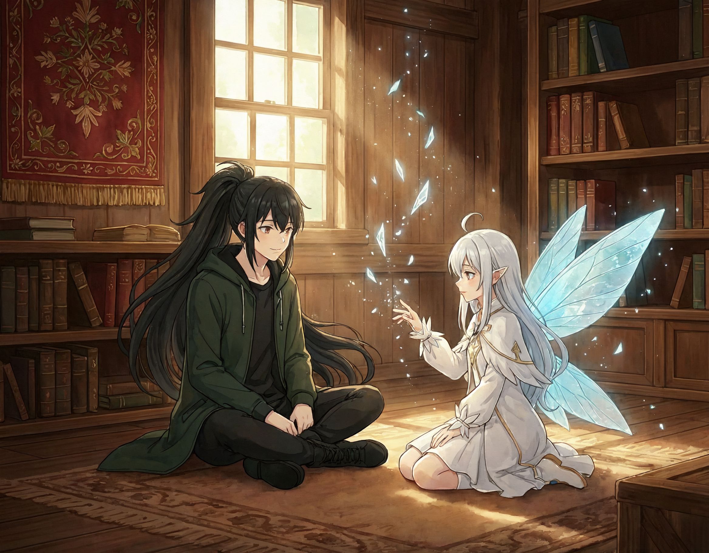 与えられた部屋は、決して広くはないが、家具は整然と配置され、清潔な寝具が敷かれたベッドが一つある。棚にはいくつかの書物が並び、壁には布で編まれた装飾がかかっていた。どこか素朴で、それでいて落ち着く空間だった。