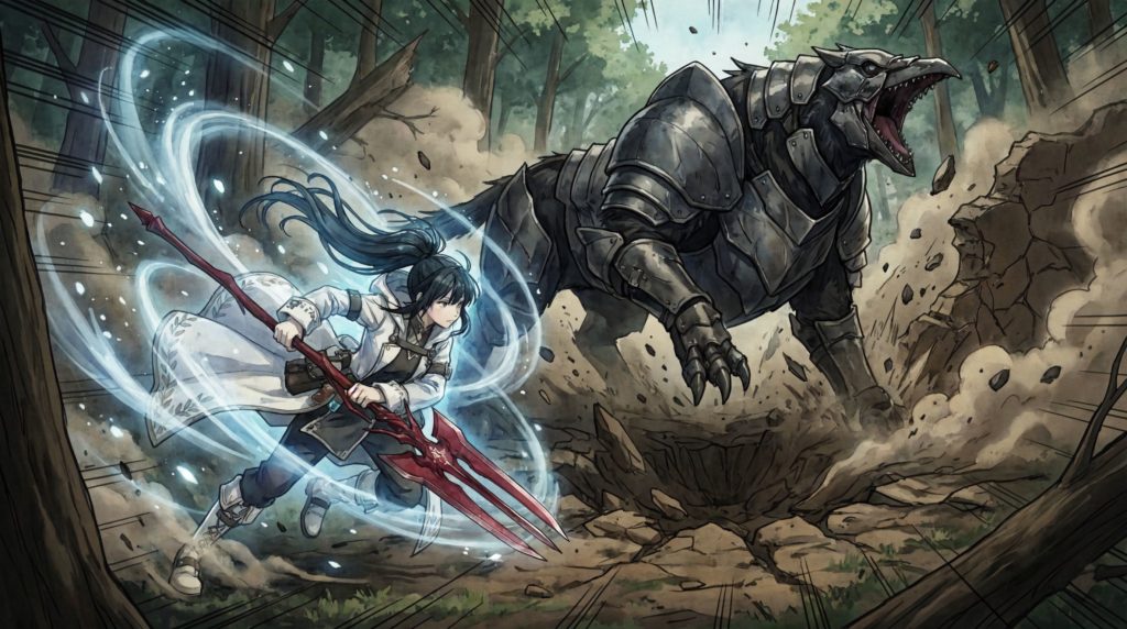 目の前に姿を現したのは、全長3メートルを超える巨大な四足魔獣『クロウアーマー』だった。その体表は鋼のような甲殻に覆われ、鋭い眼光が周囲を睥睨している。