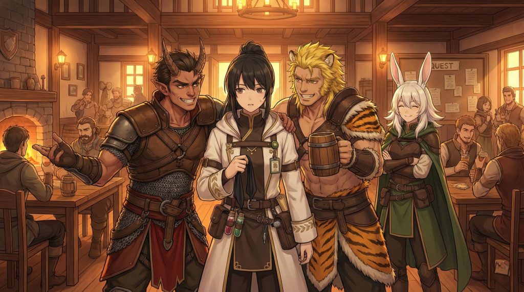 その隣には、がっしりとした体格の虎人族の男。毛並みの整った耳と、肩口から覗く縞模様の毛皮が印象的だ。